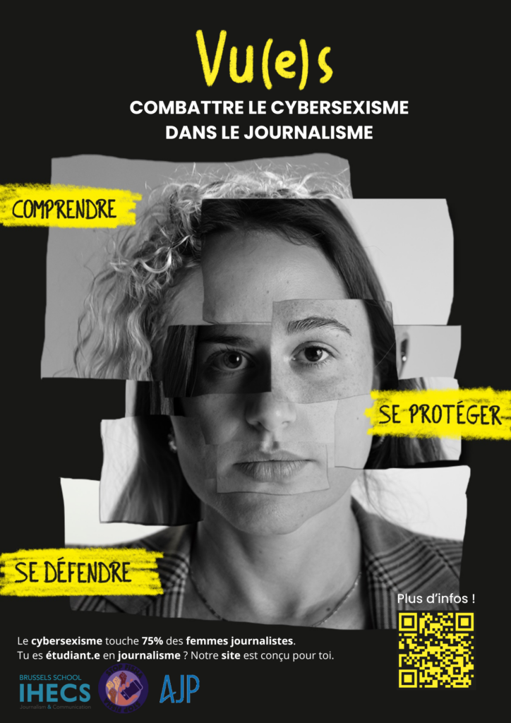 Des étudiant∙es de l’IHECS, en master de Communication culturelle et sociale, ont conçu le site Vu(e)s, un outil pédagogique pour accompagner les professeur∙es et élèves de journalisme à explorer collectivement les enjeux du cybersexisme dans le milieu journalistique. Ce site propose animation, ressources concrètes pour (se) protéger contre les cyberattaques misogynes, ainsi que des témoignages sous forme de podcast.